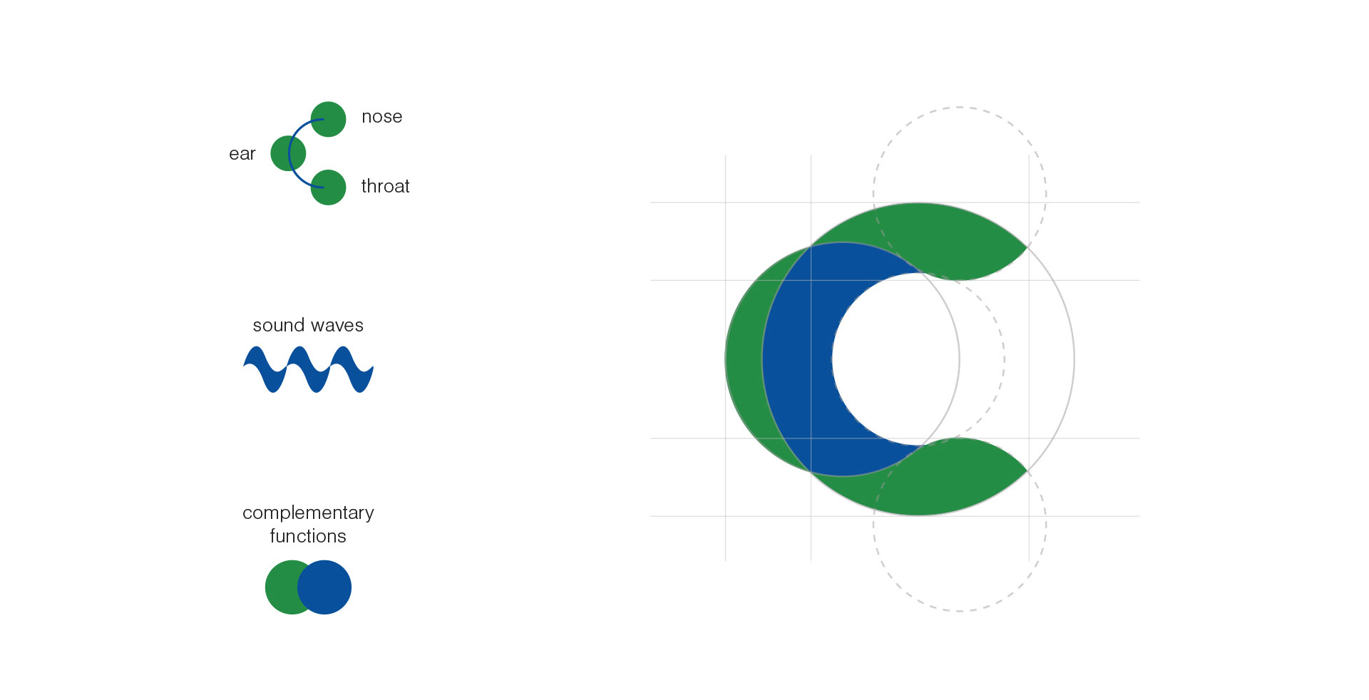 The logo has been created based on the communication flow concept. The symbol starts from the bold letter C representing a desire to assume a highlight position and the sector leadership in the estate. The three green areas divided through a wave movement represent the nose, ear, and throat, connected by the interception of the two medical areas. In addition to the form construction, the colors (green and blue) represent seriousness, vitality, and confidence and can be used as a graphic element to separate those two specialties. The typography used was the Circular Std, a geometric sans-serif font that maintains the symbol aspect adding a friendly and comfortable touch.